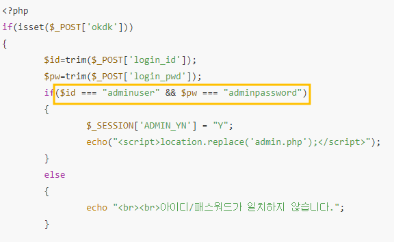 echo "<br><br>아이디/패스워드가 일치하지 않습니다.";