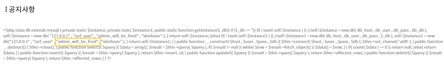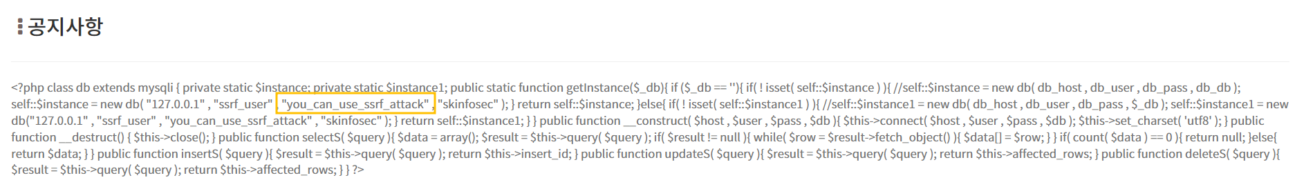 self::$instance1 = new db("mariadb" , "ssrf_user" , "ssrf12#$" , "skinfosec" );